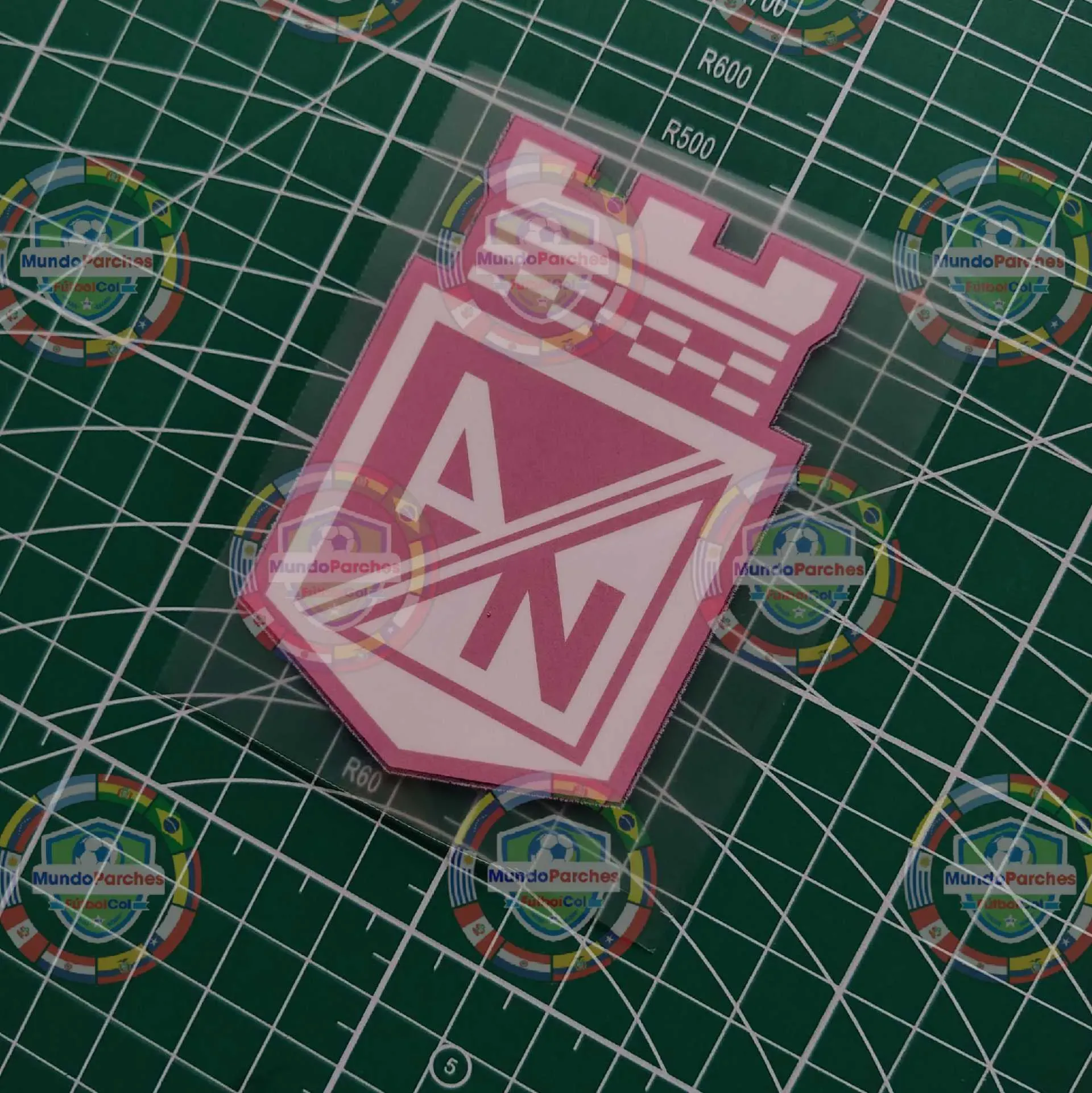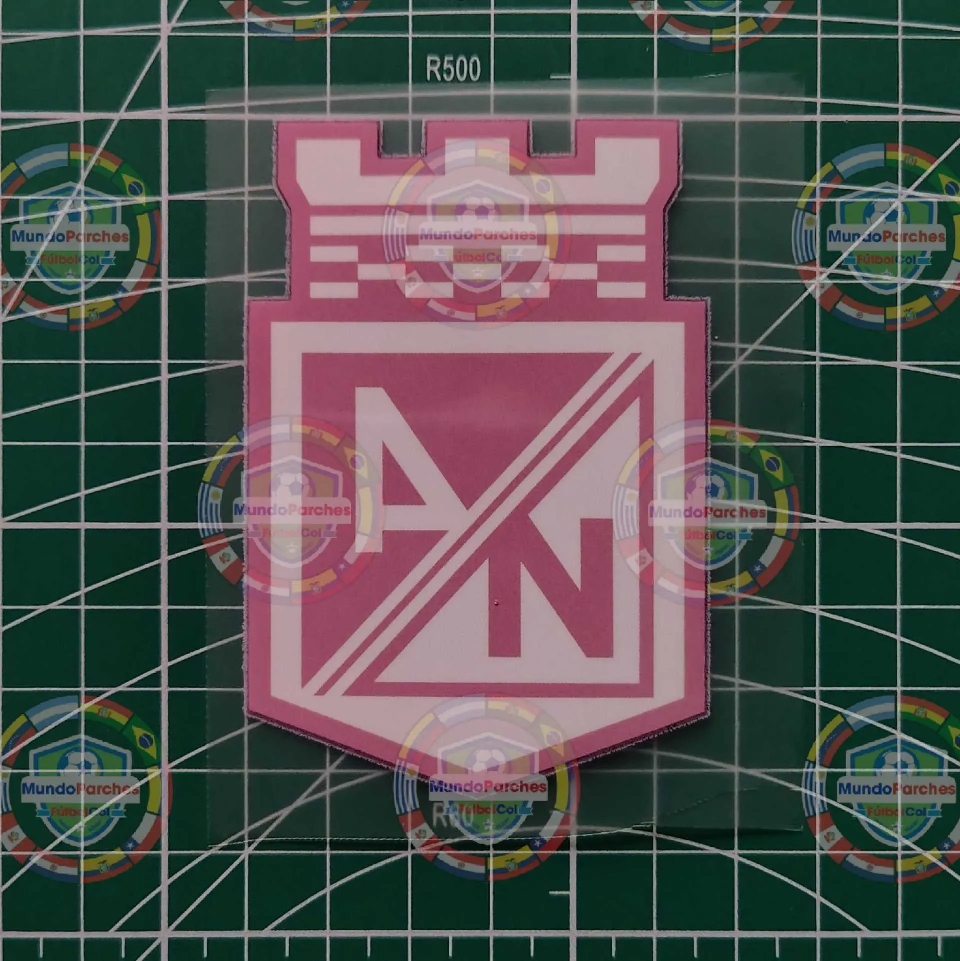 ESCUDO ATLETICO NACIONAL EN MATERIAL IMPRESO BLANCO Y ROSADO